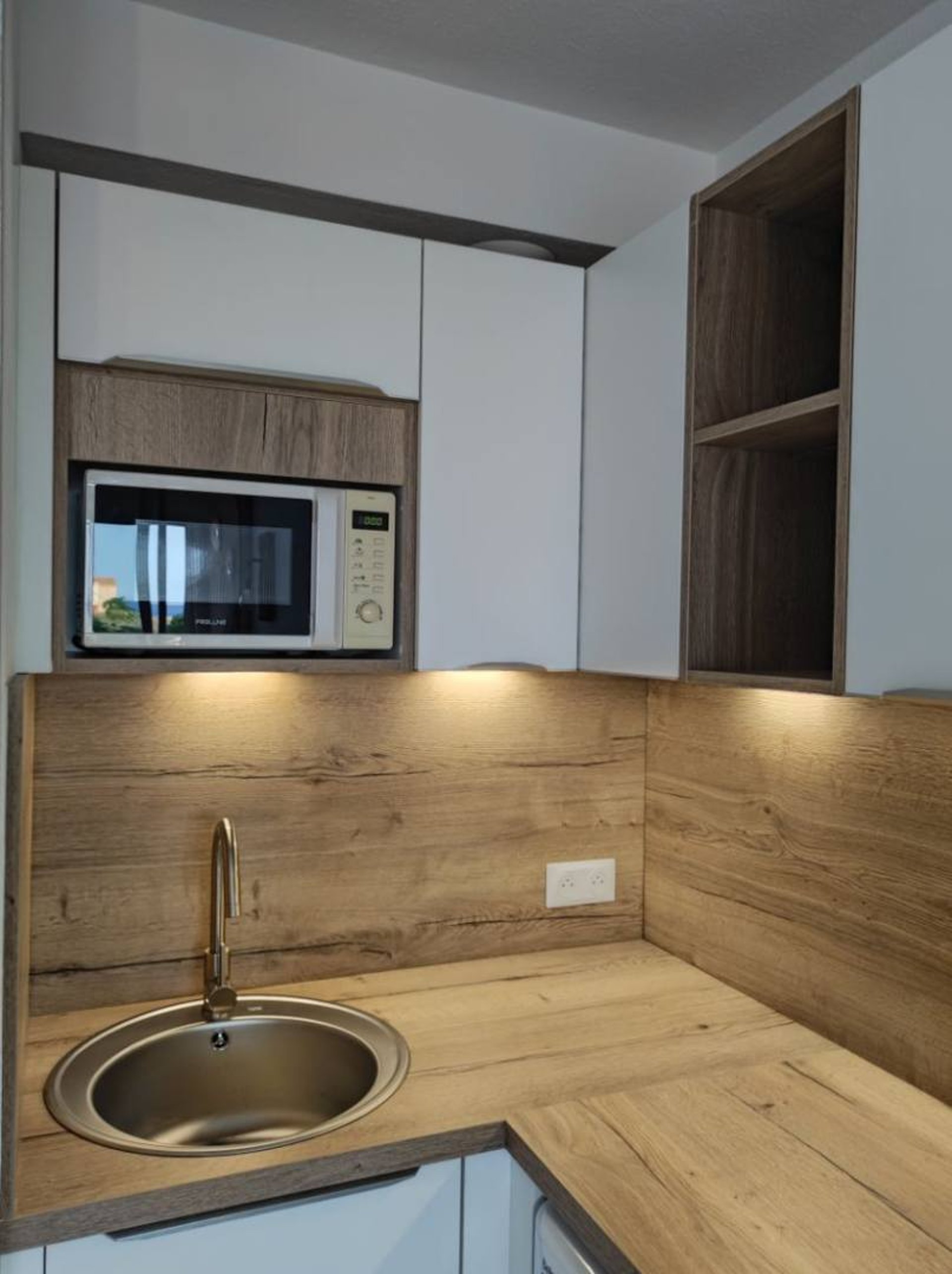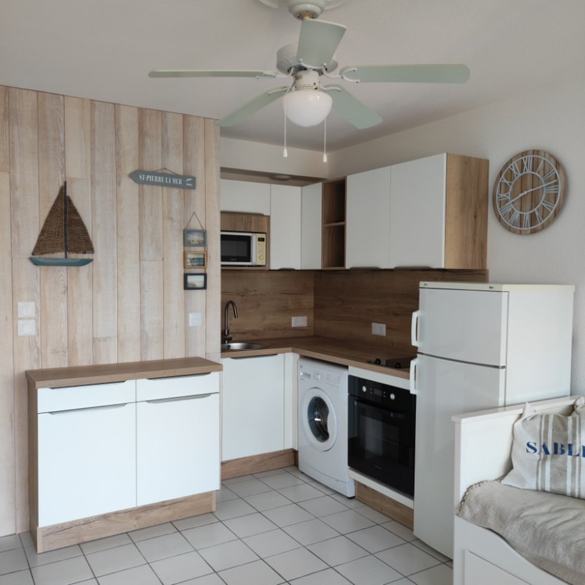 Ce projet a consisté à rénover la cuisine d'un petit appartement de vacances en bord de mer. L'objectif était clair : transformer un espace auparavant peu fonctionnel et dépourvu de rangements en une cuisine pratique et harmonieuse, invitant à la convivialité.